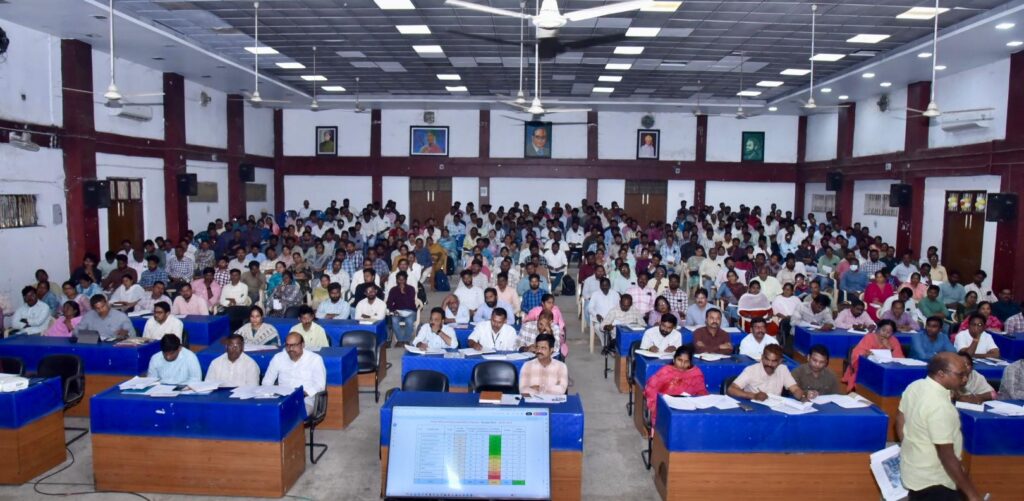 జిల్లాలో తప్పులు లేని రెవెన్యూ రికార్డులను రూపొందించడం ద్వారా, భూ సమస్యల పరిష్కారమే ప్రధాన లక్ష్యంగా జిల్లా కలెక్టర్ ఎస్.రాంసుందర్ రెడ్డి ప్రత్యేక కార్యక్రమానికి శ్రీకారం చుట్టారు. ఎన్నికలకు ముందు నిర్వహించిన భూముల రీ సర్వే ప్రక్రియలో జరిగిన పొరపాట్లను సరిదిద్దడం తోపాటు, తప్పులు లేని పట్టాదారు పాస్ పుస్తకాలను పంపిణీ చేయడం, పెండింగ్లో ఉన్న రెవెన్యూ సమస్యలను పరిష్కరించడం లక్ష్యాలుగా రెవెన్యూ డివిజన్ల వారీగా క్షేత్ర స్థాయి అధికారులు, సిబ్బందితో సమావేశాలను, శిక్షణా కార్యక్రమాలను ఏర్పాటు చేశారు. ఇందులో భాగంగా మంగళవారం కలెక్టరేట్ వేదికగా విజయనగరం రెవెన్యూ డివిజన్ పరిధిలోని తహసీల్దార్లు, సర్వేయర్లు, వీఆర్వోలు మరియు గ్రామ సర్వేయర్లతో ఆయన కీలక సమావేశాన్ని నిర్వహించారు.