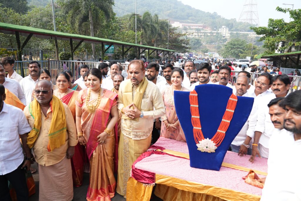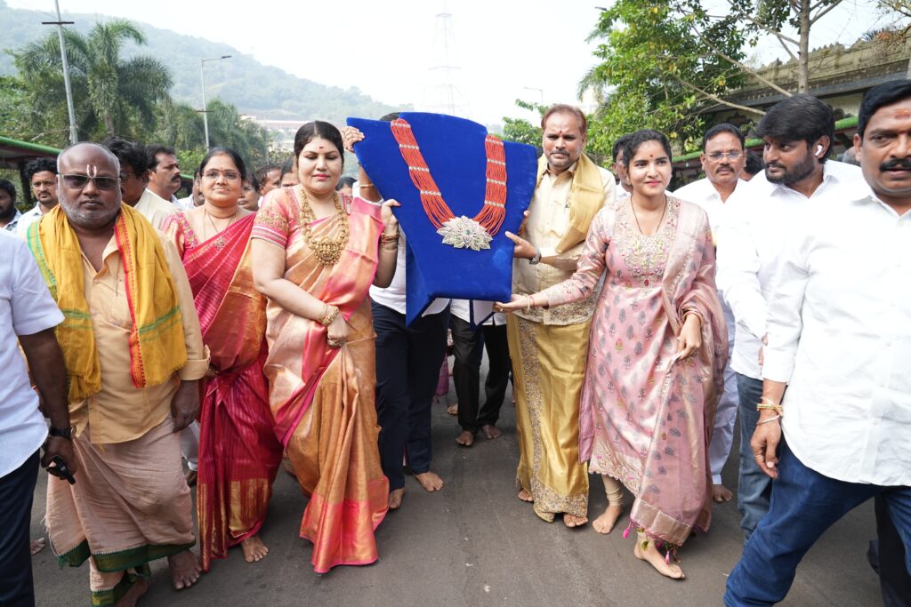 సింహాద్రి అప్పన్నకు బంగారు పగడాల హారం సమర్పించిన చిన్న శ్రీను కుటుంబం