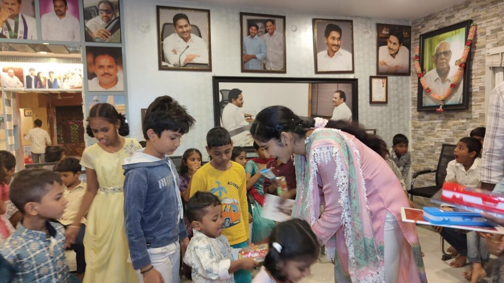 Children’s Day Celebrations: నవంబరు 14వ తేదీ జాతీయ బాలల దినోత్సవం (Children’s Day) పురస్కరించుకొని ఉమ్మడి విజయనగరం జిల్లా పరిషత్ చైర్మెన్, వైసీపీ జిల్లా అధ్యక్షులు మజ్జి శ్రీనివాసరావు (చిన్న శ్రీను) స్వగృహం ధర్మపురి సమీపంలోని సిరిసహాస్ర రైజింగ్ ప్యాలస్ లో చిల్డ్రన్స్ డే వేడుకలు ఘనంగా నిర్వహించారు. వైసీపీ జిల్లా అధ్యక్షులు మరియు భీమిలి నియోజకవర్గం సమన్వయ కర్త చిన్న శ్రీను గారాల పట్టి, చిన్న శ్రీను సోల్జర్స్ అధ్యక్షురాలు సిరిసహాస్ర (సిరమ్మ) అధ్యక్షతన నిర్వహించిన ఈ బాలల దినోత్సవ వేడుకల్లో… ధర్మపురితో పాటు పరిసర గ్రామాల పిల్లలు పెద్ద ఎత్తున పాల్గొన్నారు.